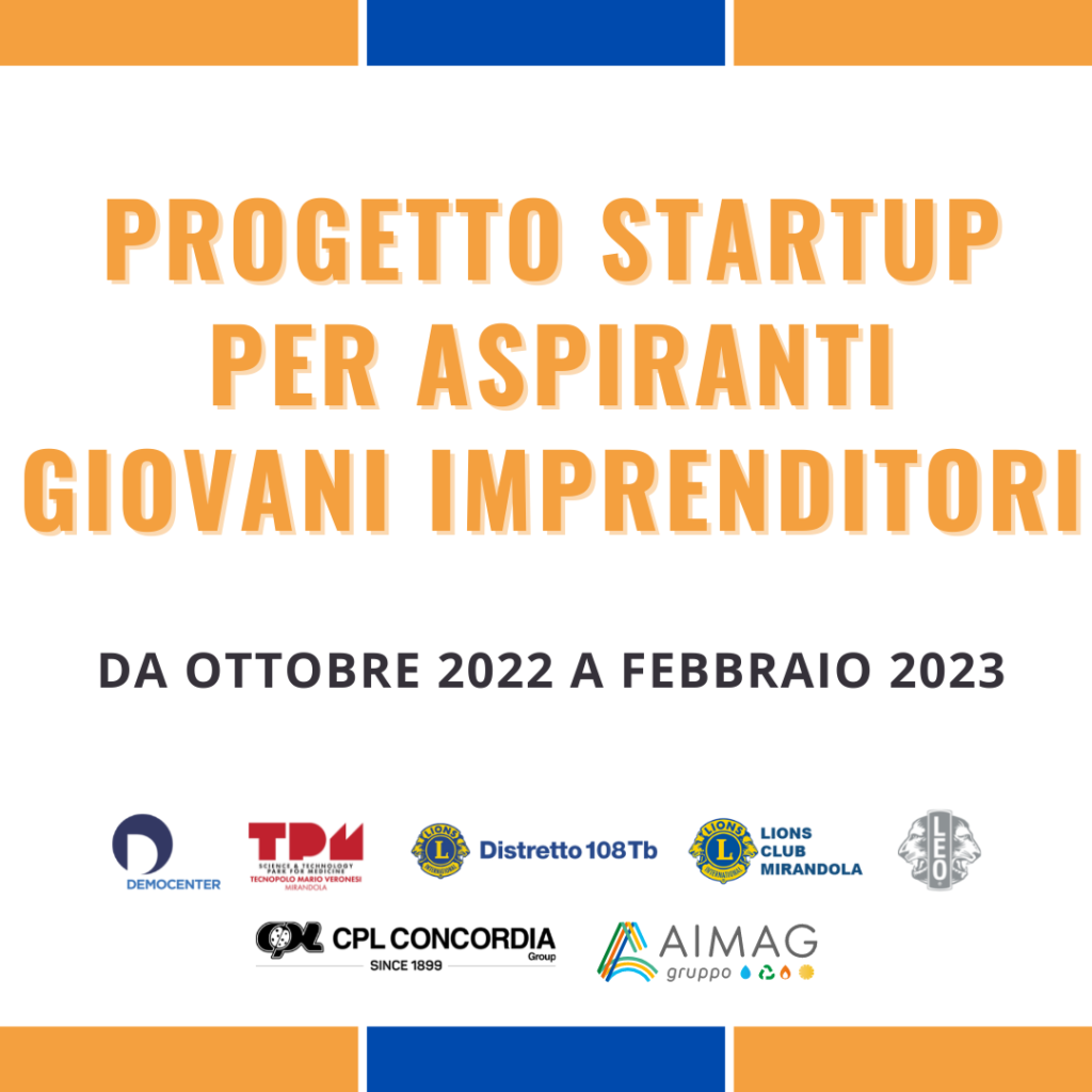 Il Lions Club Mirandola, nell’ambito del programma di formazione permanente del distretto 108Tb, in collaborazione con CPL Concordia e AIMAG SPA e il contributo di Fondazione Democenter, propone un Corso di Alta Formazione gratuito di 24 ore in aula (in presenza e/o online) + 2 momenti di formazione presso le aziende, rivolto a giovani interessati ad acquisire conoscenze e competenze su strumenti, metodologie e tecniche per trasformare una idea di business in un progetto imprenditoriale attraverso la creazione di una startup.