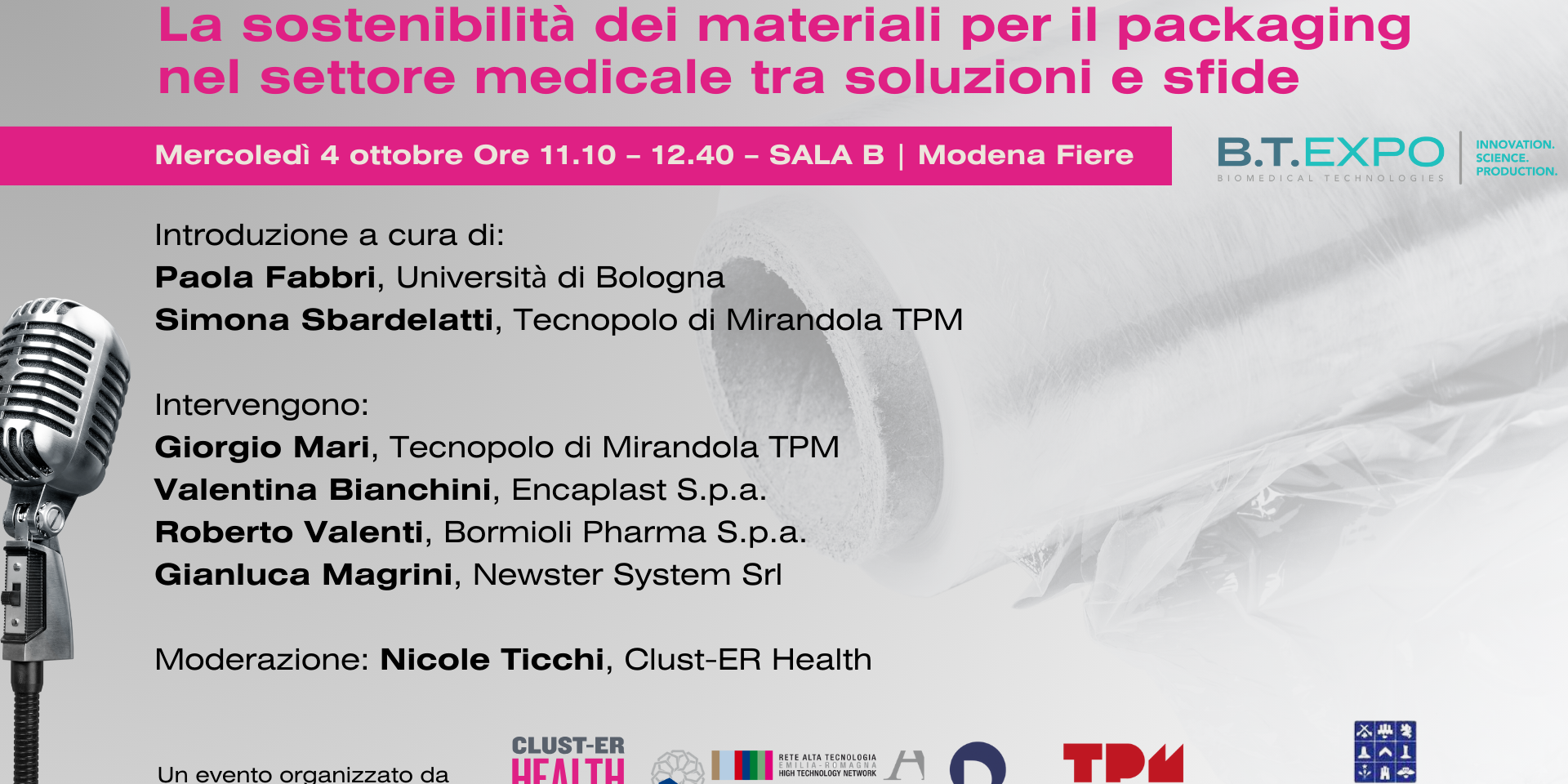 Una Tavola rotonda a cura di Clust-ER Health e Tecnopolo di Mirandola organizzata nell’ambito di B.T. Expo Shomed – la Biomedical Technologies Expo di Modena che si terrà a Modena Fiere il 3 e 4 ottobre.